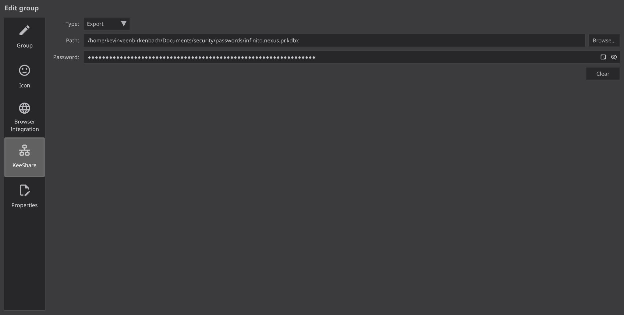 /home/youruser/Nextcloud/KeeShare/PR-Team.shareor\\fileserver\share\pr-team.share. - Password: set a strong password for this share file (if using encryption).